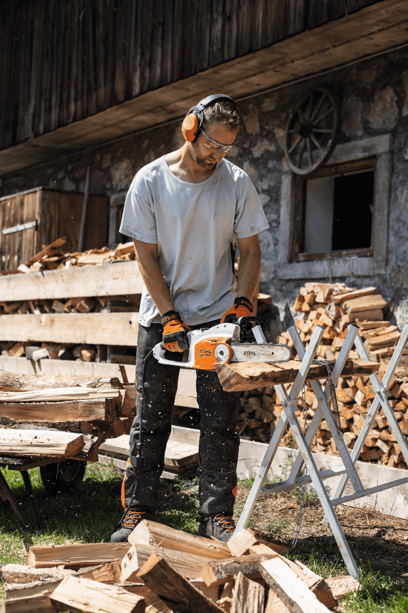 Lekka i komfortowa pilarka elektryczna do przygotowywania drewna opałowego.